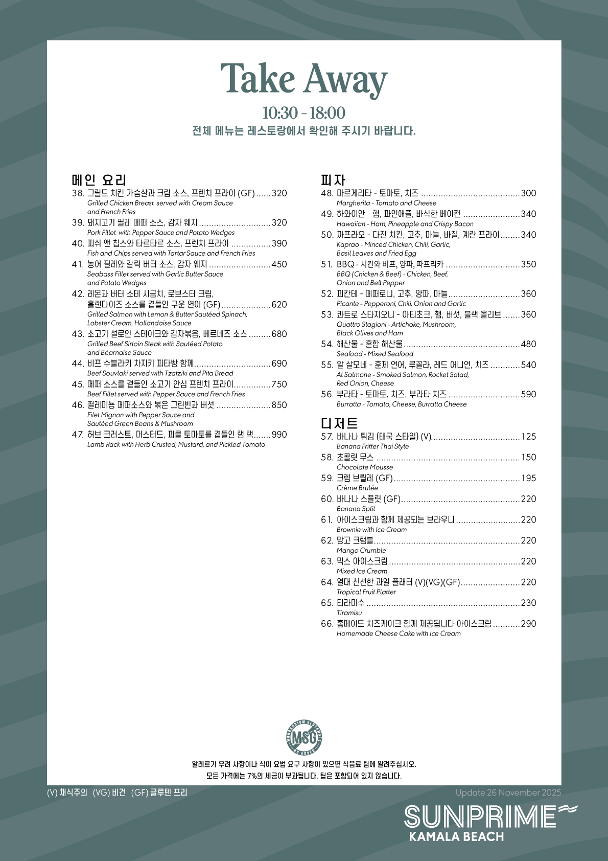 전체 메뉴는 레스토랑에서 확인해 주시기 바랍니다.