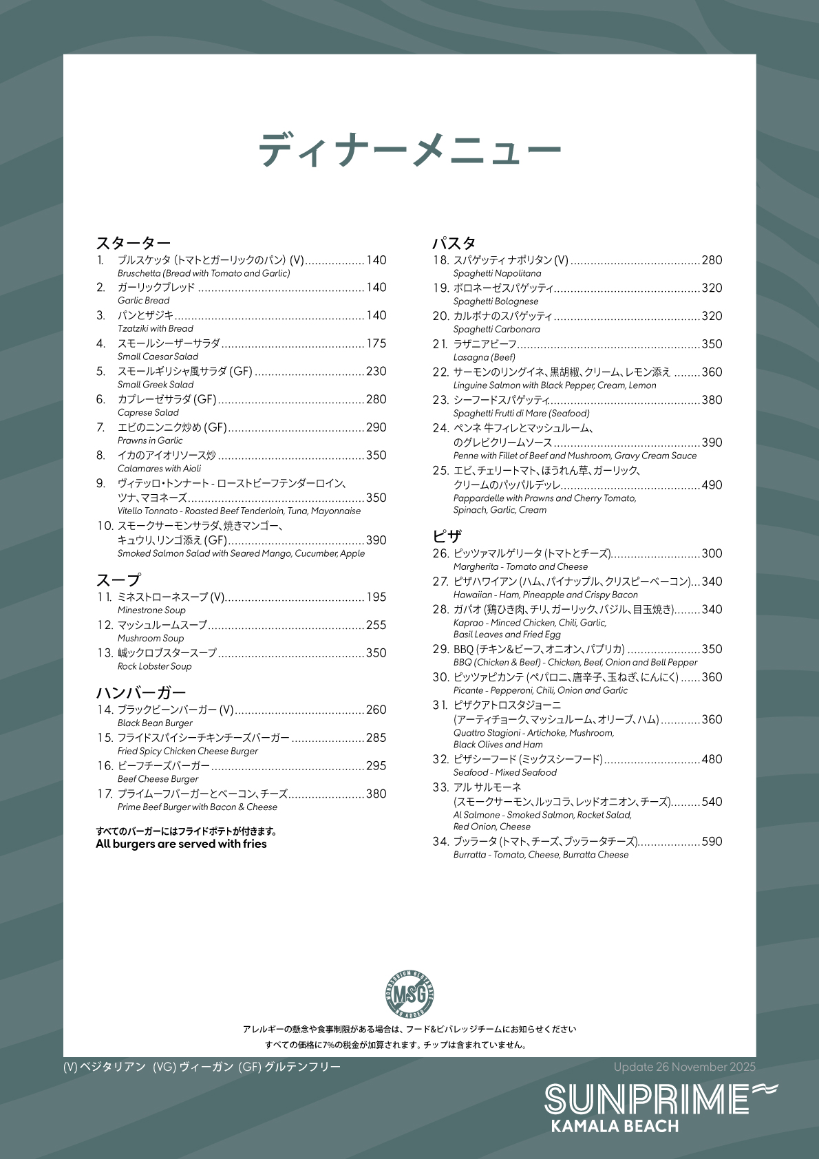 ディナーメニュー