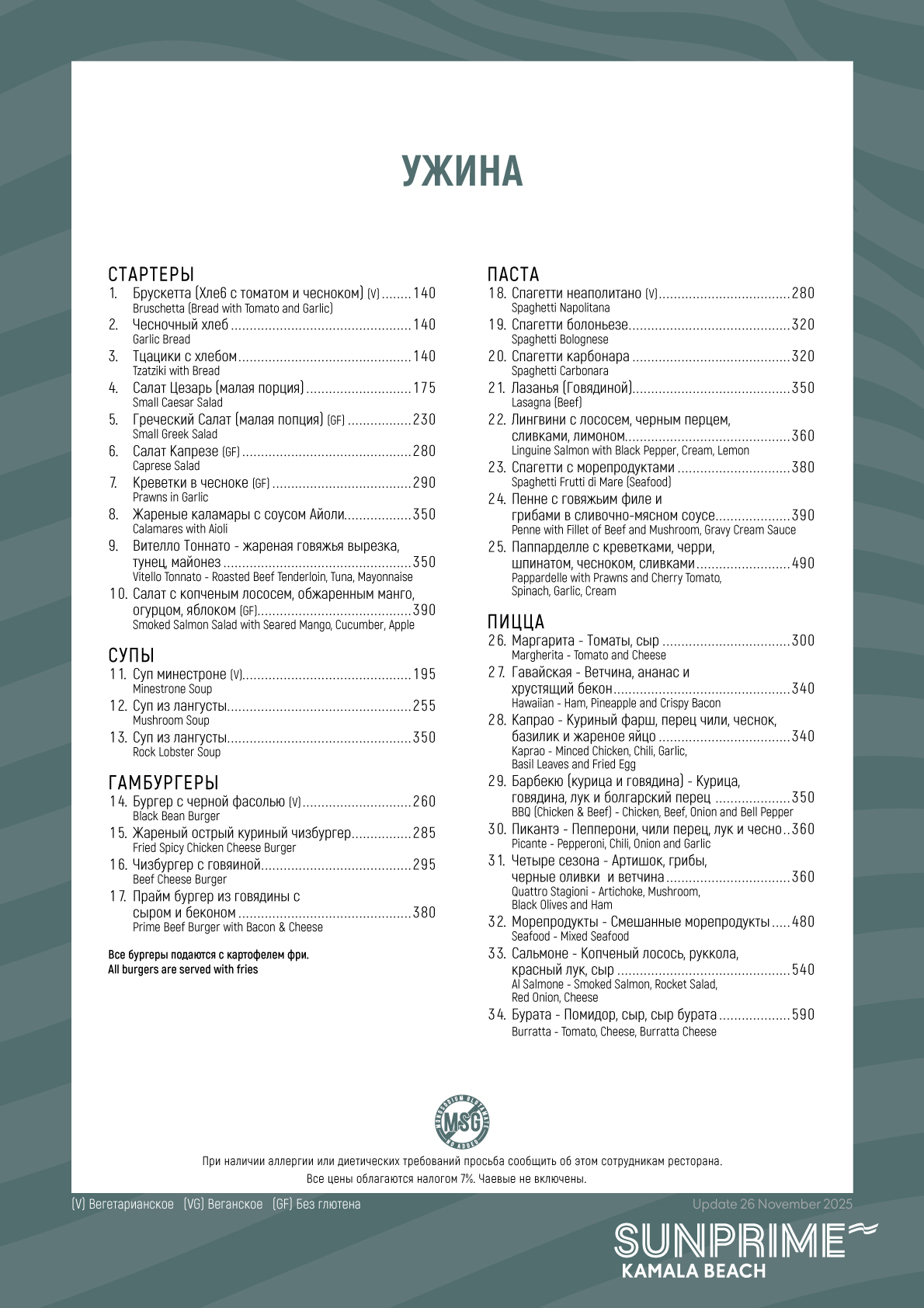 Меню Ужина